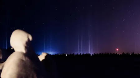 A great opportunity for seeing light pillars is in the northern hemisphere. Places like Canada, Russia, and Scandinavia are known for them. The cold winter nights are ideal.